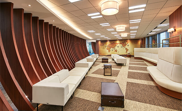 The employee cafeteria is modeled after a lodging house, and is intended to wipe away the weariness of your journey. It offers a menu including a buffet, as well as a variety of dishes. It also has a few playful features, so you can satisfy your hunger and your curiosity at the same time.